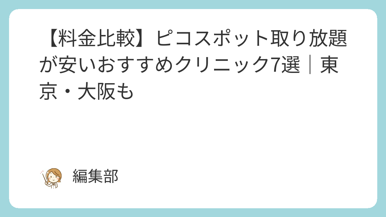 この記事では、ピコスポット取り放題のメリットや、東京・大阪で料金が安いおすすめのクリニックを比較して紹介します。