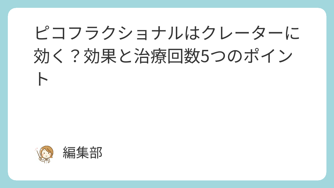 この記事では、ピコフラクショナルがクレーターに効く仕組みから、効果を実感するために必要な治療回数やダウンタイムのリアルな経過、ダーマペンやポテンツァとの違いまで、治療を受けるか判断するために必要な情報を美容皮膚科医が分かりやすく解説します。