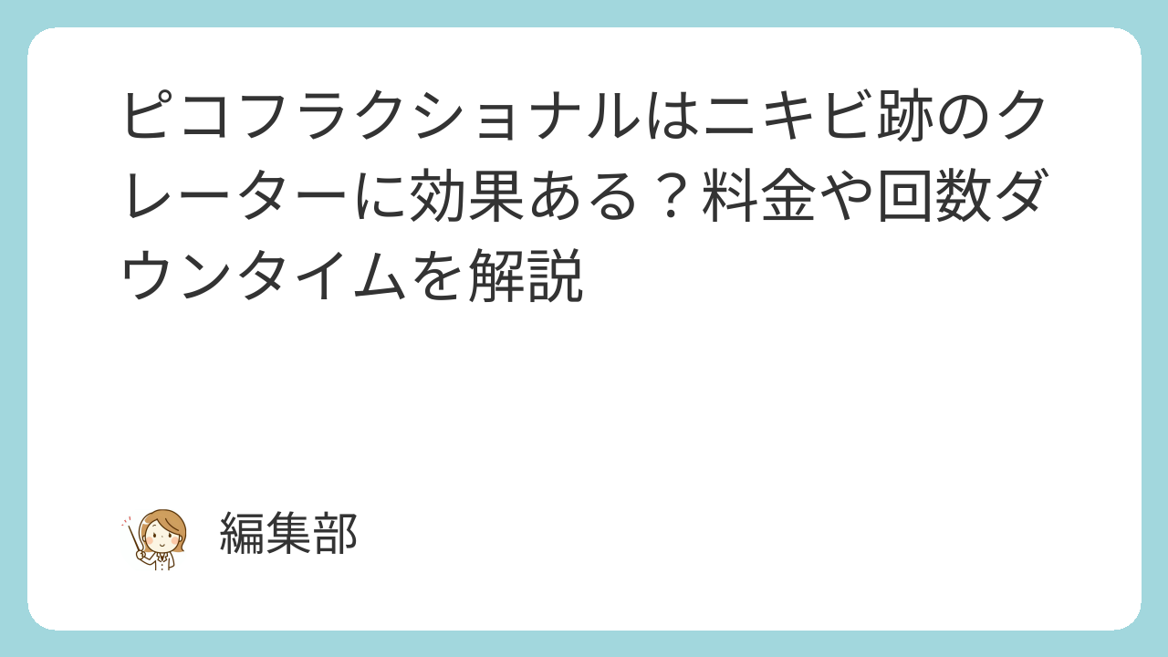この記事では、ピコフラクショナルがニキビ跡、特にクレーターにどう作用するのか、ダウンタイムや料金について解説しました。