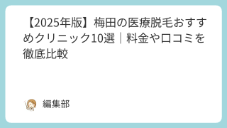 脱毛 【2025年版】梅田の医療脱毛おすすめクリニック10選|料金や口コミを徹底比較