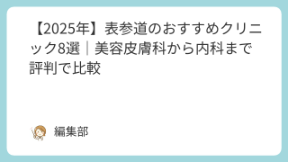 たくさんのクリニックが集まる表参道で後悔しないためには、あなたの悩みやライフスタイルにぴったりの医院を見つけることが何よりも重要です。この記事では、美容皮膚科から内科、婦人科まで、表参道でおすすめのクリニックを8院厳選して紹介します。口コミ...