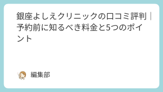 銀座よしえクリニックの口コミ評判|予約前に知るべき料金と5つのポイント